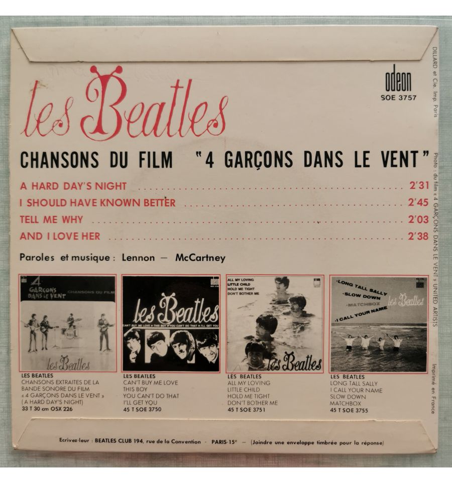 Les Beatles - Chansons Du Film "4 Garçons Dans Le Vent" (1964, 7", Single, vinyl)